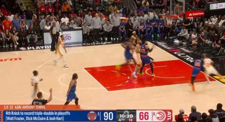 股票股票配资 队史第四人!唐斯助攻阿努诺比命中三分 个人季后赛生涯首次三双